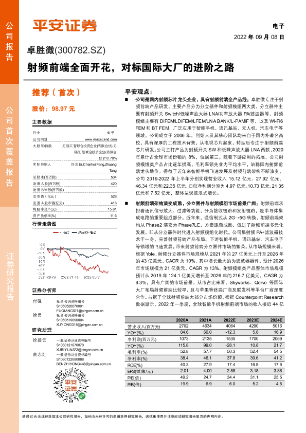 【平安证券】【20220908】射频前端全面开花,对标国际大厂的进阶之路-29页