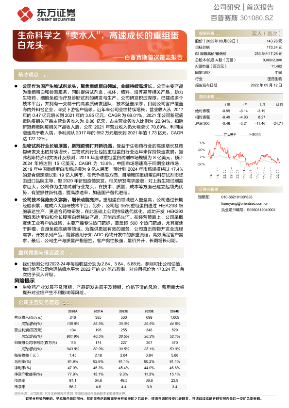 【东方证券】【20220912】百普赛斯首次覆盖报告:生命科学之“卖水人”,高速成长的重组蛋白龙头-36页