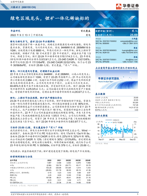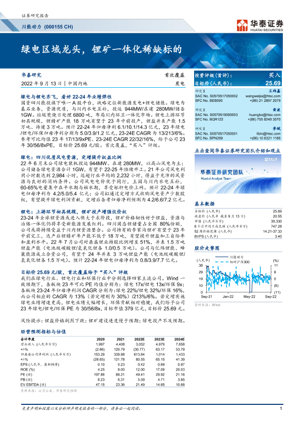 【华泰证券】【20220913】20220913-华泰证券-川能动力-000155.SZ-绿电区域龙头,锂矿一体化稀缺标的-26页