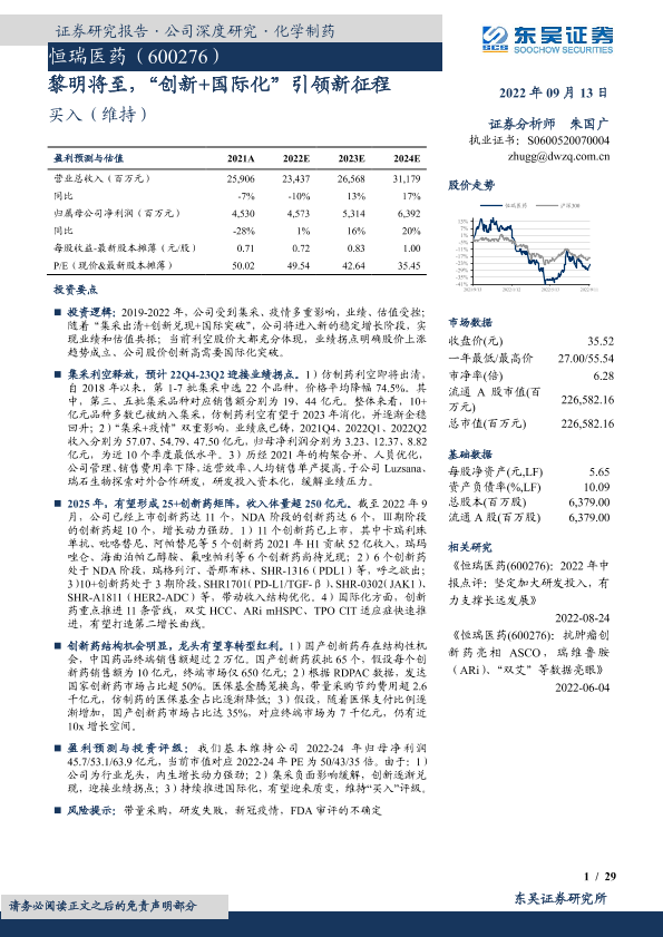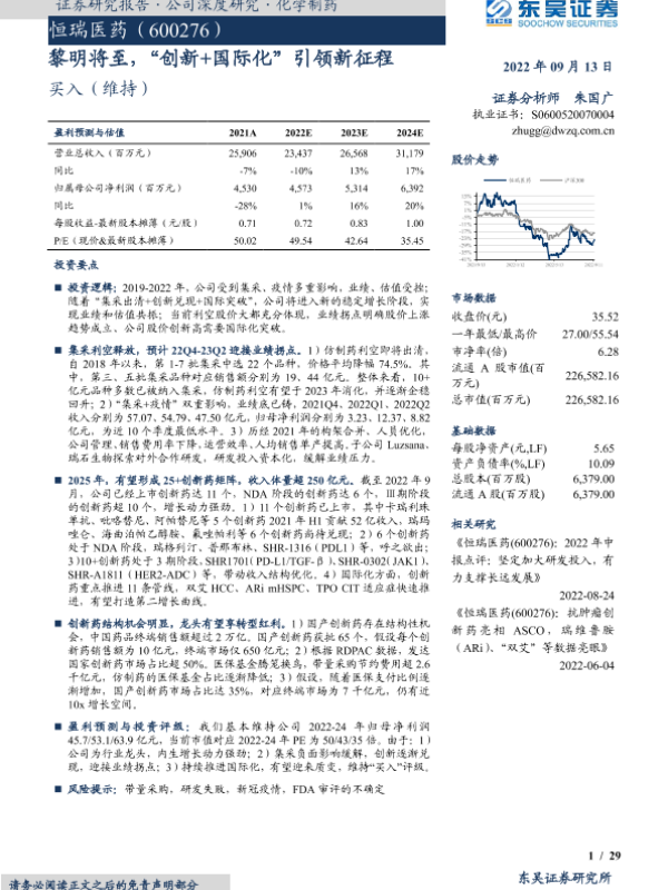 【东吴证券】【20220913】恒瑞医药-600276.SH-黎明将至,“创新+国际化”引领新征程-29页