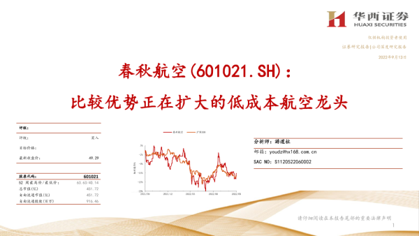 【华西证券】【20220913】春秋航空:比较优势正在扩大的低成本航空龙头-40页