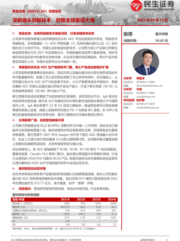 【民生证券】【20220913】20220913-民生证券-荣昌生物-688331.SH-深度报告:深耕源头创新技术,放眼全球星辰大海-62页
