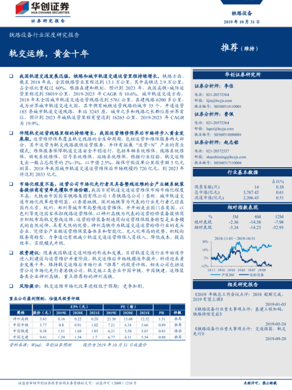 【华创证券】【20191031】铁路设备行业深度研究报告:轨交运维,黄金十年-28页
