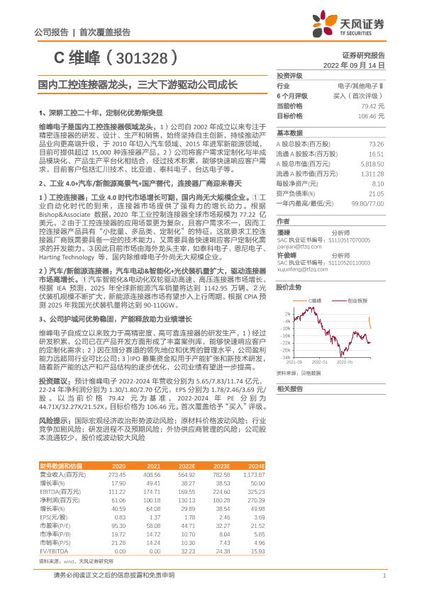 【天风证券】【20220914】国内工控连接器龙头,三大下游驱动公司成长-20页