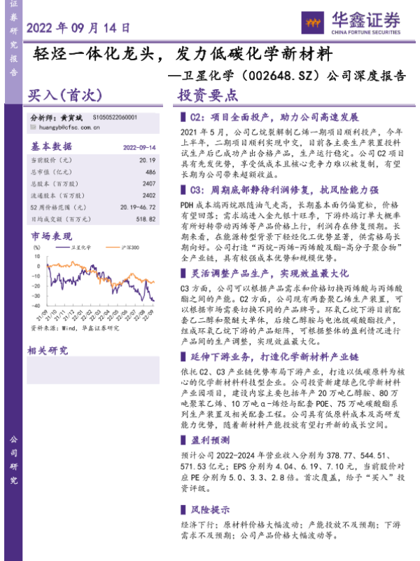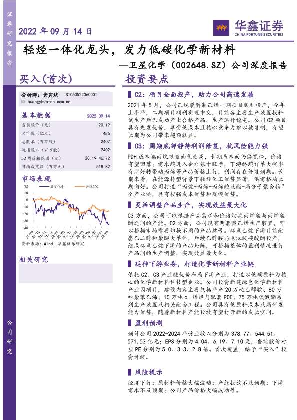 C2项目 C3产业链 低碳化学新材料 卫星化学 轻烃一体化