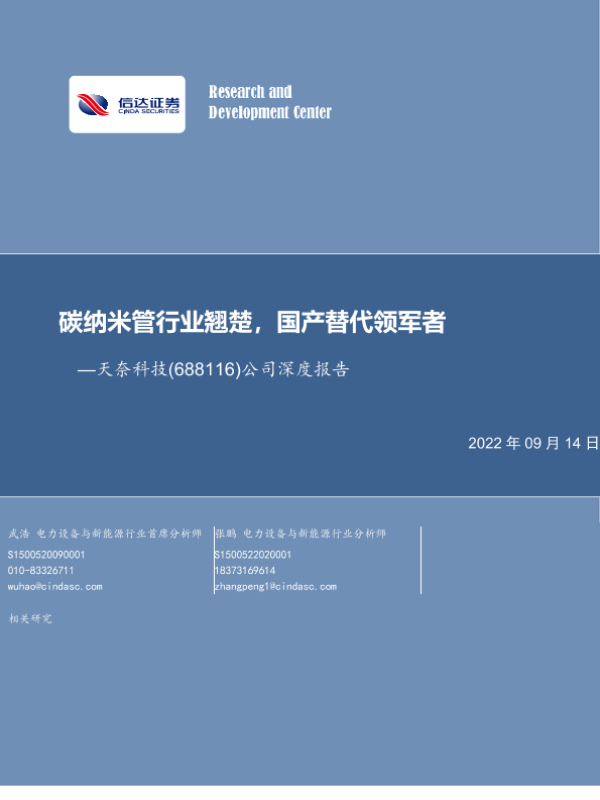 【信达证券】【20220914】碳纳米管行业翘楚,国产替代领军者-27页