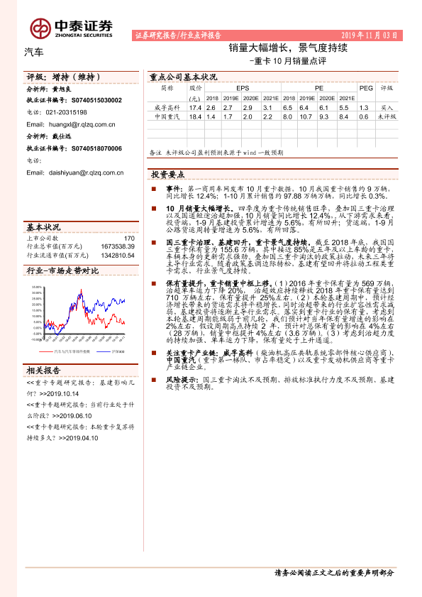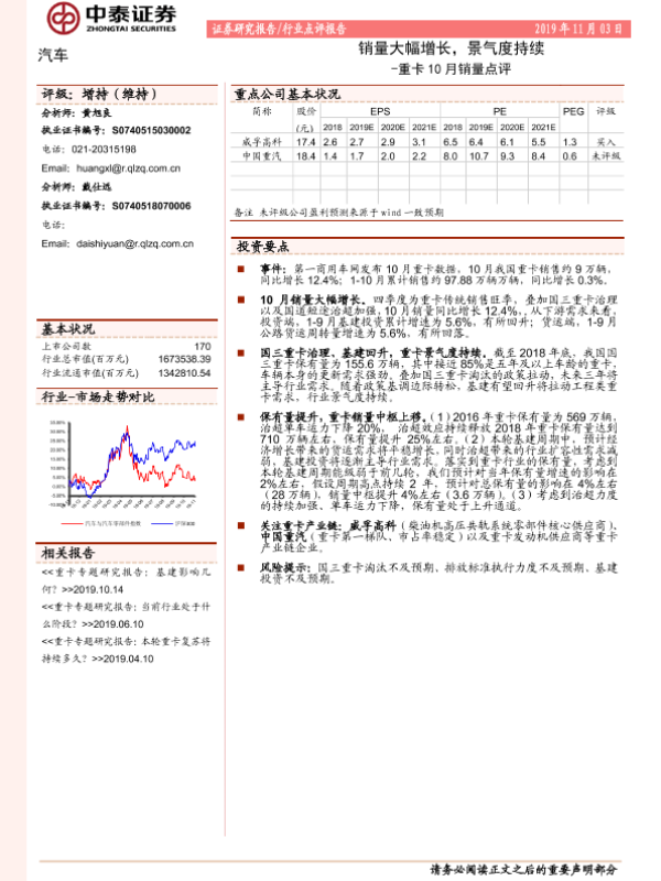 【中泰证券】【20191103】重卡10月销量点评:销量大幅增长,景气度持续-3页
