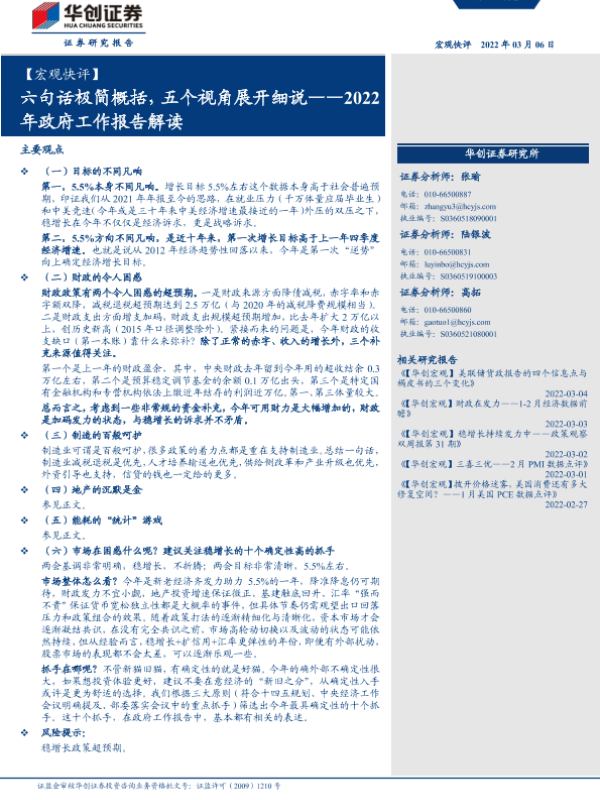 【华创证券】【20220306】【宏观快评】2022年政府工作报告解读:六句话极简概括,五个视角展开细说-15页
