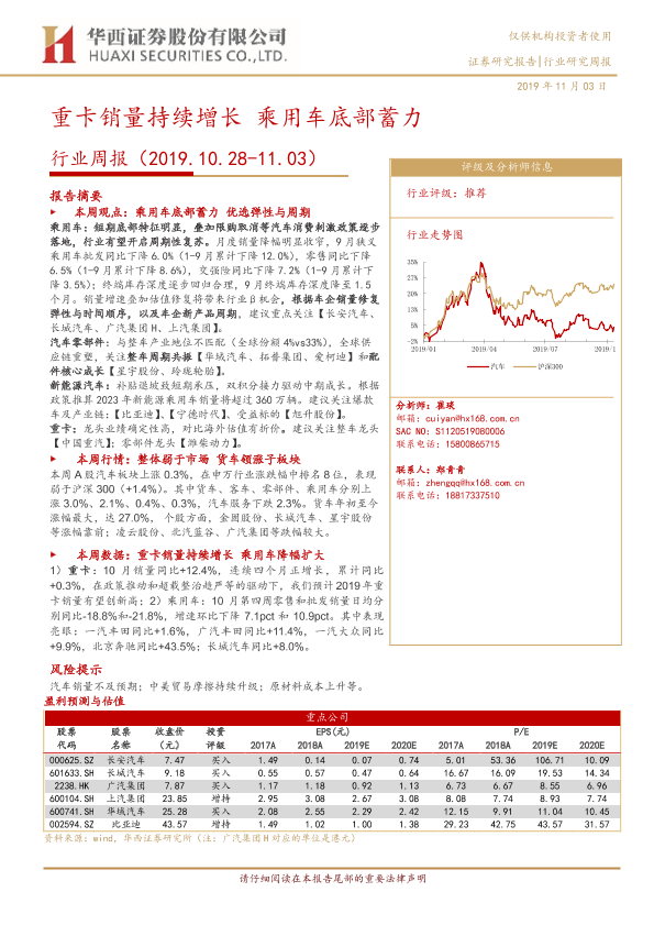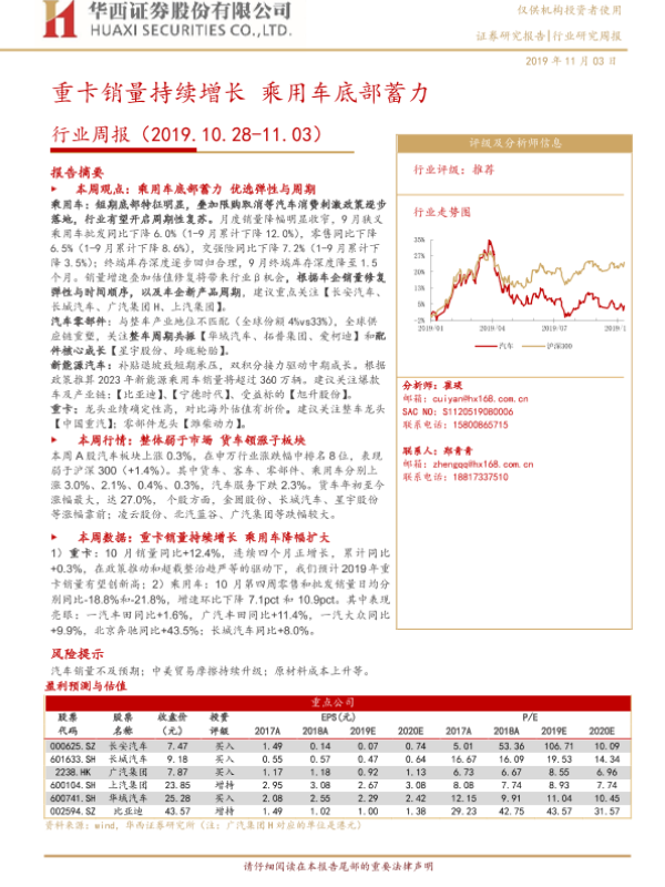 【华西证券】【20191103】20191103-华西证券-汽车行业周报:重卡销量持续增长 乘用车底部蓄力-18页