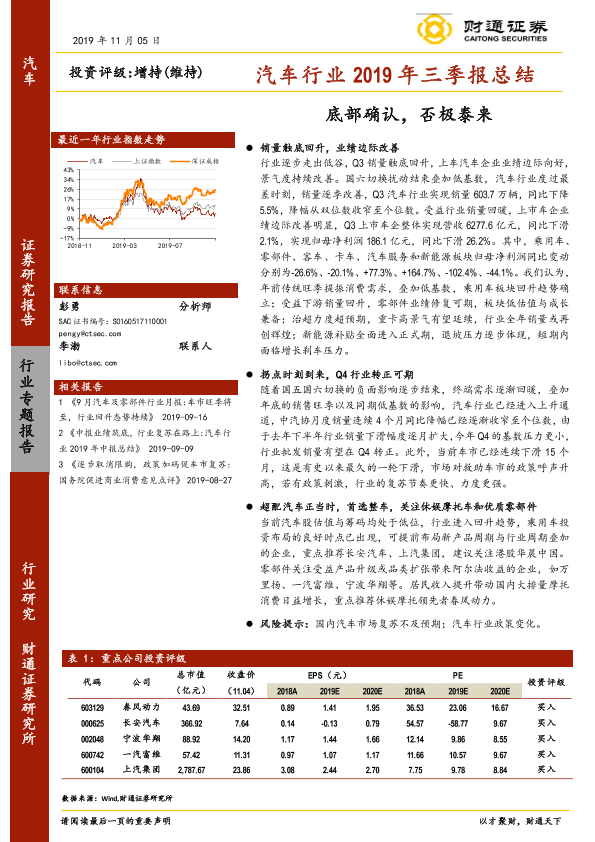 【财通证券】【20191105】汽车行业2019年三季报总结:底部确认,否极泰来-23页
