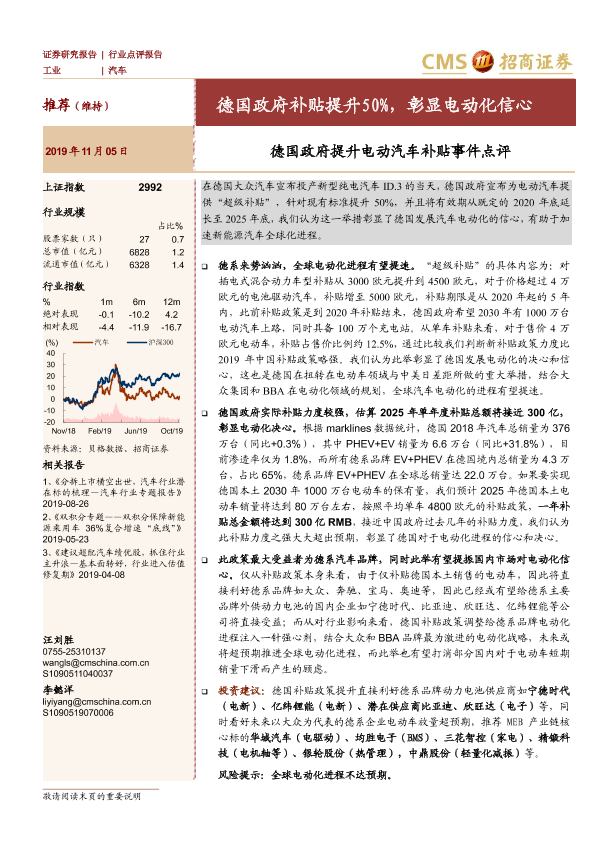 【海通证券】【20191105】德国政府提升电动汽车补贴事件点评:德国政府补贴提升50%,彰显电动化信心-4页