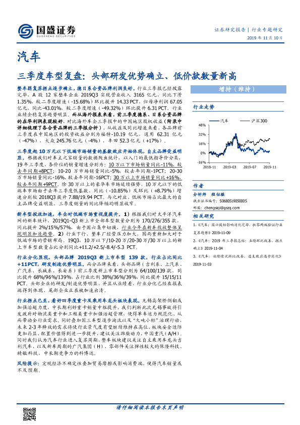 【国盛证券】【20191110】汽车:三季度车型复盘:头部研发优势确立、低价款数量新高-13页