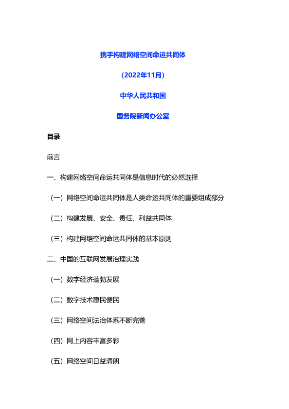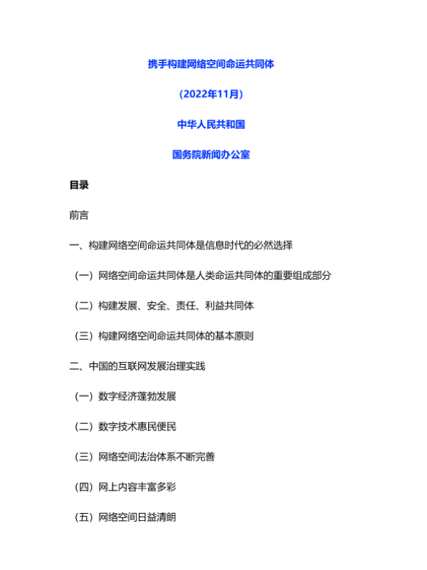 【中华人民共和国国务院新闻办公室】【202211】携手构建网络空间命运共同体白皮书-40页