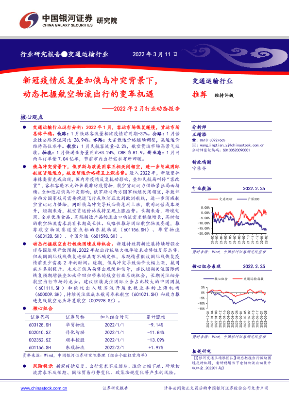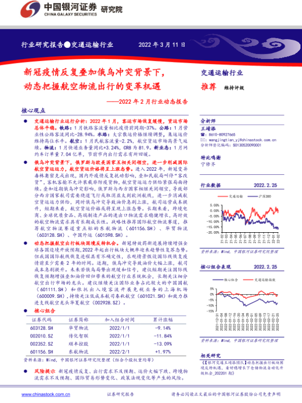 【银河证券】【20220311】交通运输行业2022年2月行业动态报告:新冠疫情反复叠加俄乌冲突背景下,动态把握航空物流出行的变革机遇-44页