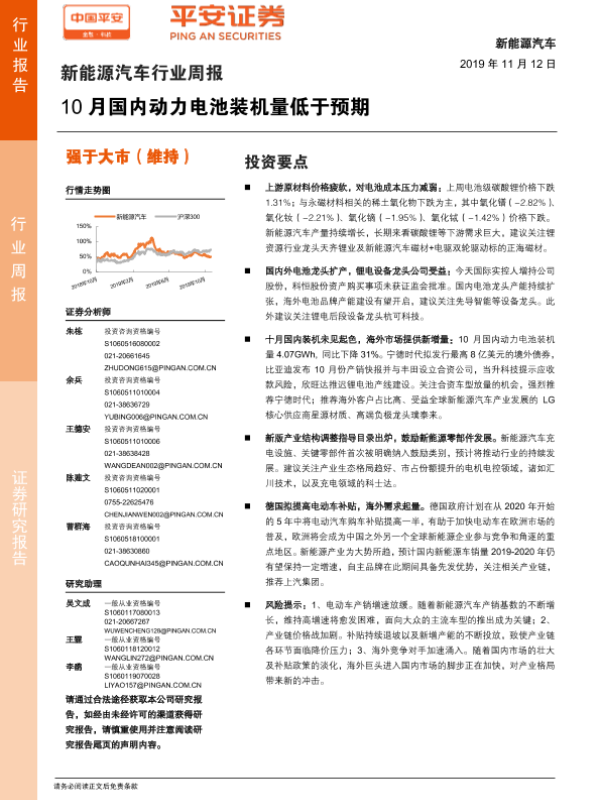 【平安证券】【20191112】20191112-平安证券-新能源汽车行业周报:10月国内动力电池装机量低于预期-10页