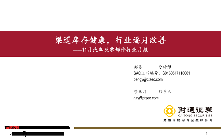 【财通证券】【20191113】11月汽车及零部件行业月报:渠道库存健康,行业逐月改善-19页