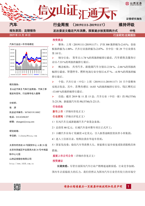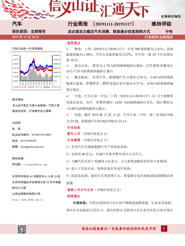 【山西证券】【20191118】汽车行业周报:发改委发文稳定汽车消费,探索逐步放宽限购方式-13页