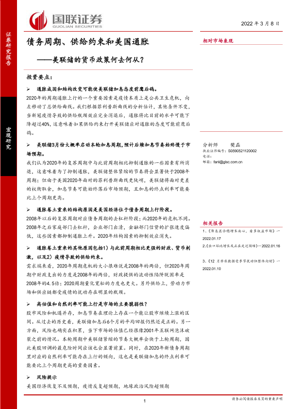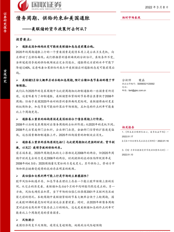 【国联证券】【20220308】债务周期、供给约束和美国通胀:美联储的货币政策何去何从?-27页