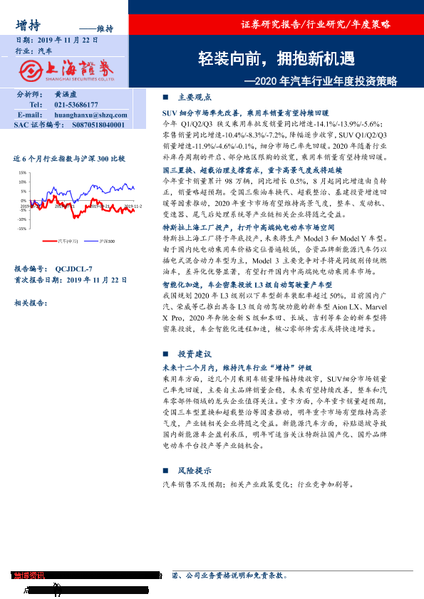 【上海证券】【20191122】2020年汽车行业年度投资策略:轻装向前,拥抱新机遇-27页