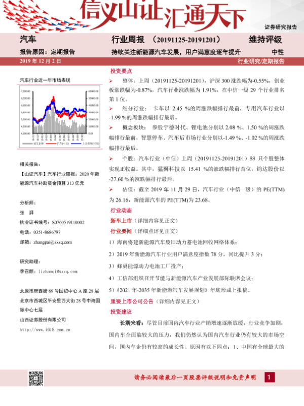 【山西证券】【20191202】20191202-山西证券-汽车行业周报:持续关注新能源汽车发展,用户满意度逐年提升-14页