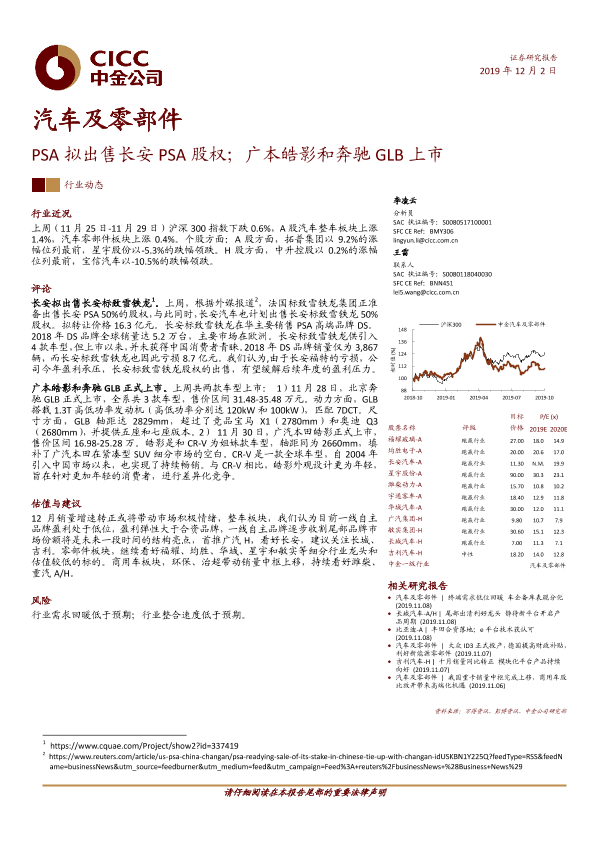 【中金公司】【20191202】汽车及零部件:PSA拟出售长安PSA股权;广本皓影和奔驰GLB上市-12页