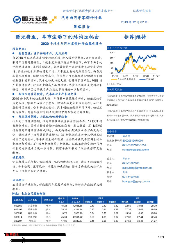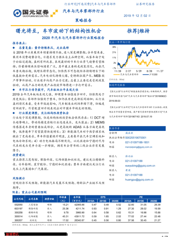 【国元证券】【20191202】2020年汽车与汽车零部件行业策略报告:曙光将至,车市波动下的结构性机会-73页