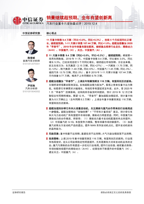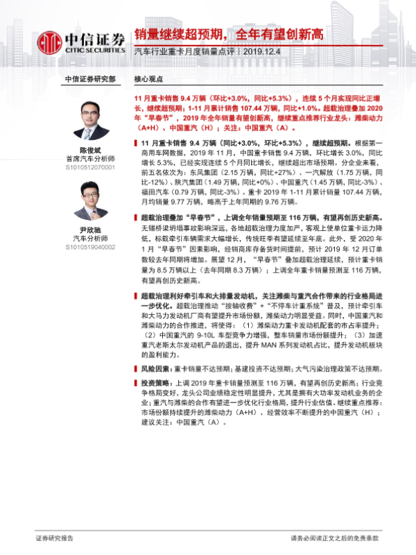 【中信证券】【20191204】汽车行业重卡月度销量点评:销量继续超预期,全年有望创新高-2页