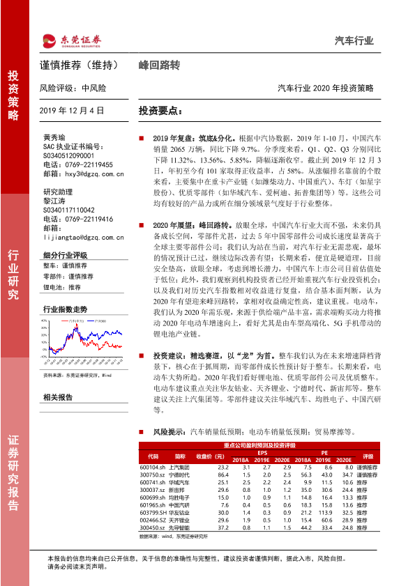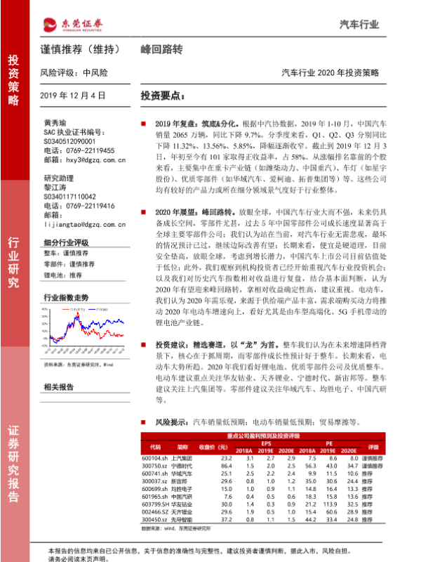 【东莞证券】【20191204】汽车行业2020年投资策略:峰回路转-20页