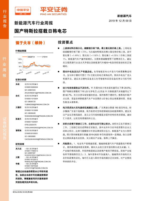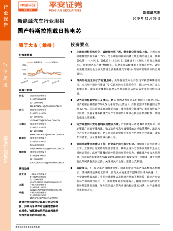 【平安证券】【20191209】新能源汽车行业周报:国产特斯拉搭载日韩电芯-10页