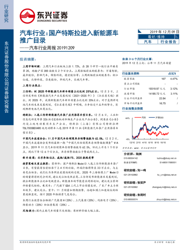 【东兴证券】【20191209】汽车行业周报:国产特斯拉进入新能源车推广目录-16页