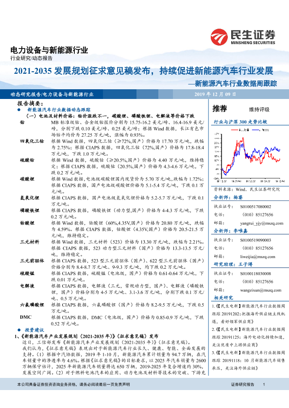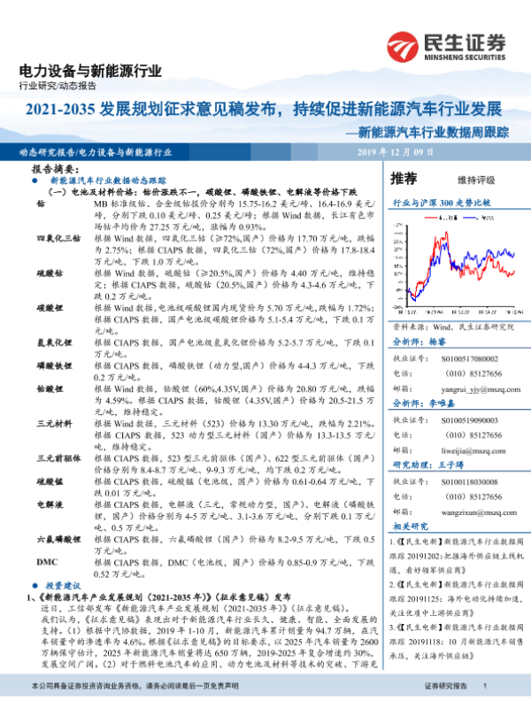 【民生证券】【20191209】2021-2035发展规划征求意见稿发布,持续促进新能源汽车行业发展——新能源汽车行业数据周跟踪-16页