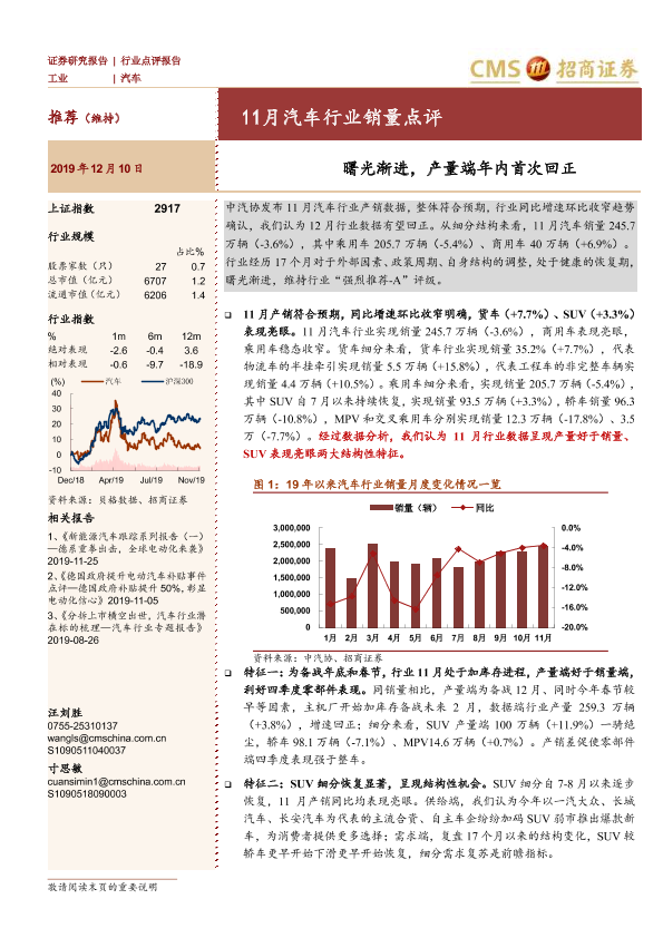 【海通证券】【20191210】11月汽车行业销量点评:曙光渐进,产量端年内首次回正-4页