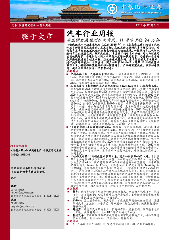 【中银证券】【20191209】20191209-中银证券-汽车行业周报:新能源发展规划征求意见,11月重卡销9.4万辆-17页