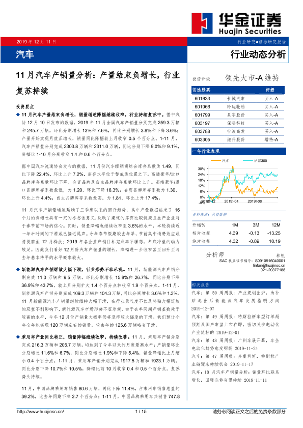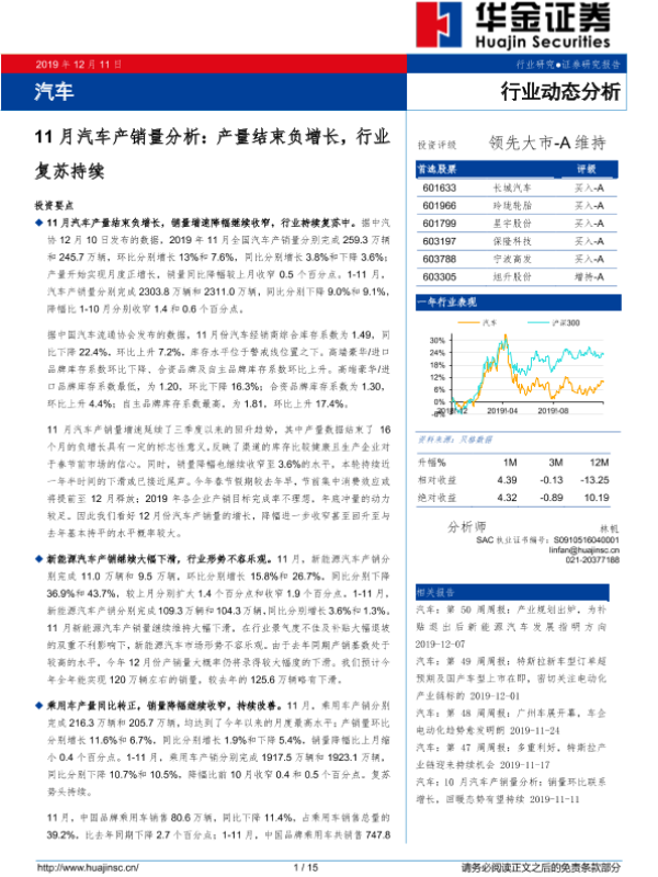 【华金证券】【20191211】11月汽车产销量分析:产量结束负增长,行业复苏持续-15页