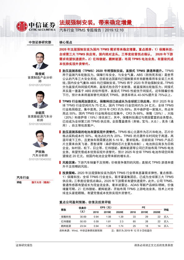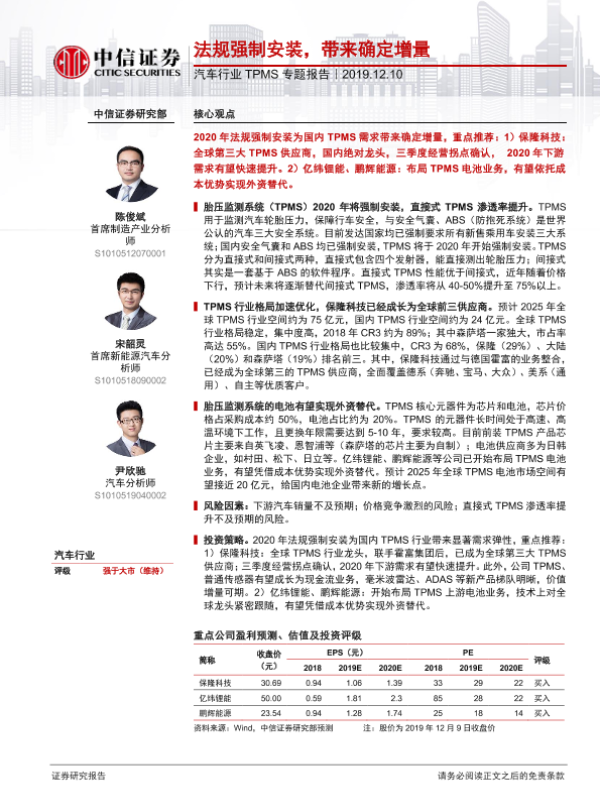 【中信证券】【20191210】汽车行业TPMS专题报告:法规强制安装,带来确定增量-10页
