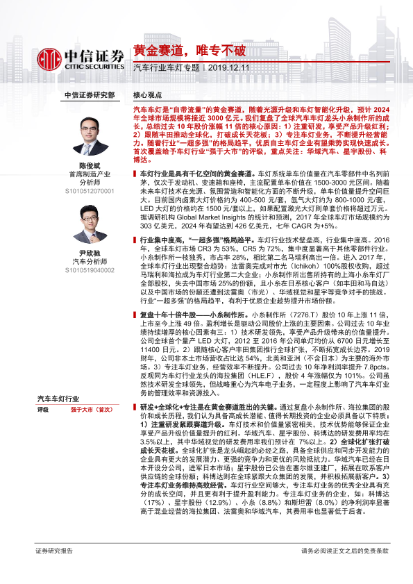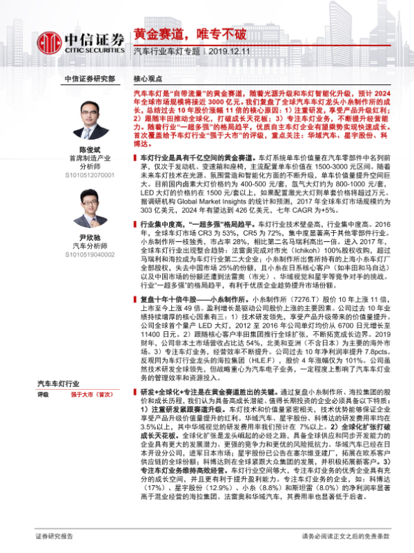 【中信证券】【20191211】汽车行业车灯专题:黄金赛道,唯专不破-28页