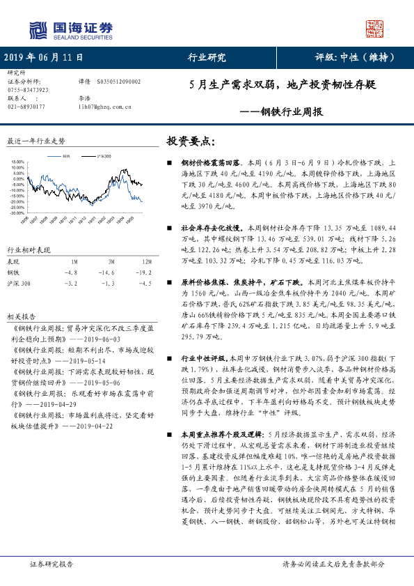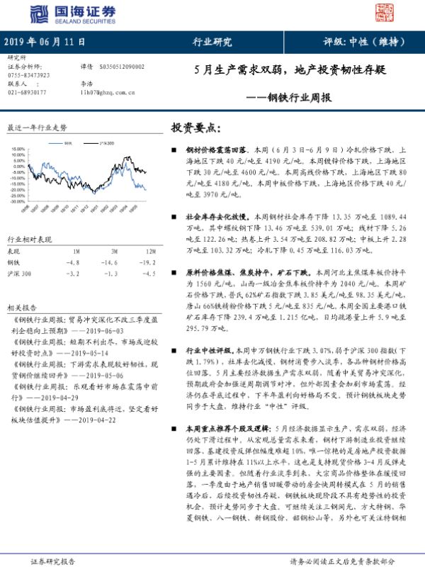 【国海证券】【20190611】20190611-国海证券-钢铁行业周报:5月生产需求双弱,地产投资韧性存疑-14页