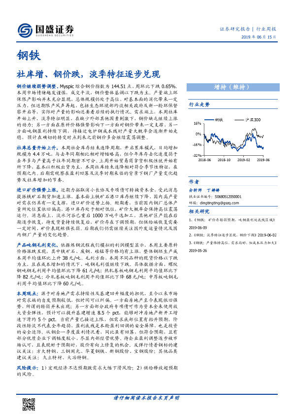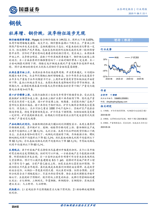 【国盛证券】【20190615】钢铁行业周报:社库增、钢价跌,淡季特征逐步兑现-10页
