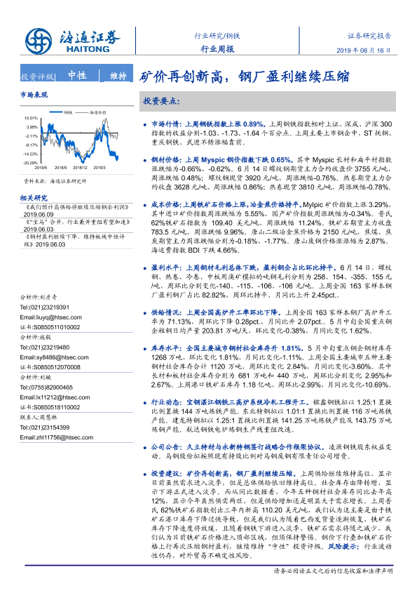 【海通证券】【20190616】20190616-海通证券-钢铁行业周报:矿价再创新高,钢厂盈利继续压缩-15页