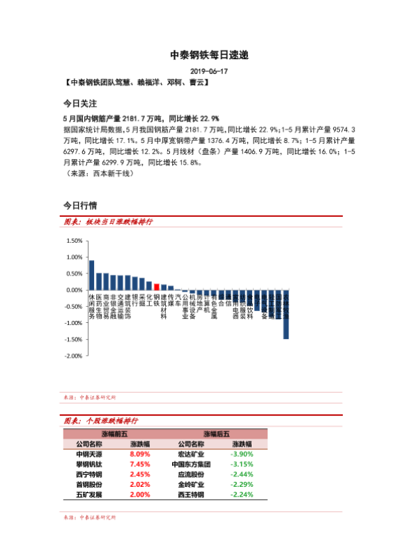 【中泰证券】【20190617】中泰钢铁每日速递-5页