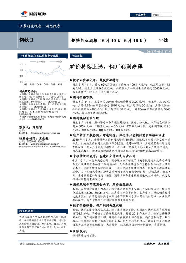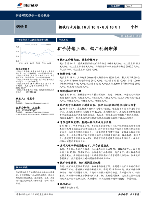 【国信证券】【20190617】20190617-国信证券-钢铁行业周报:矿价持续上涨,钢厂利润渐薄-14页