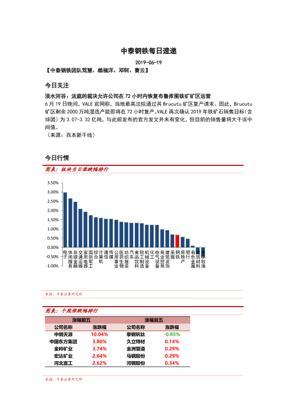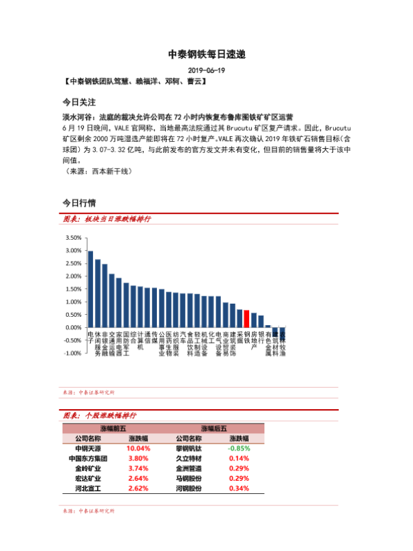 【中泰证券】【20190619】中泰钢铁每日速递-5页