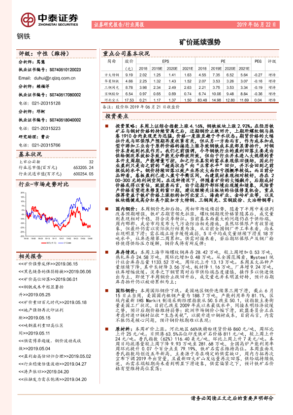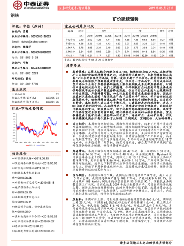 【中泰证券】【20190622】20190622-中泰证券-钢铁行业周报:矿价延续强势-15页