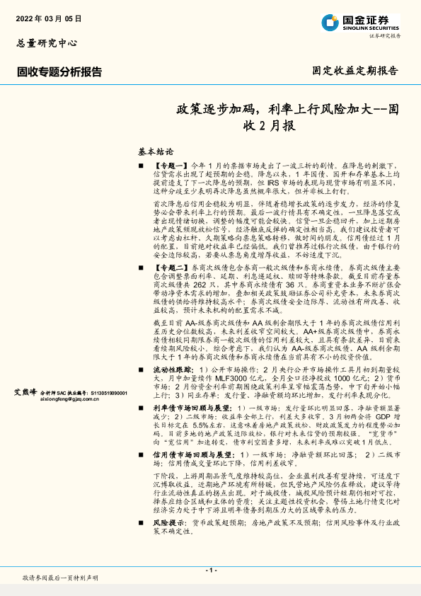 【国金证券】【20220305】固收2月报:政策逐步加码,利率上行风险加大-30页