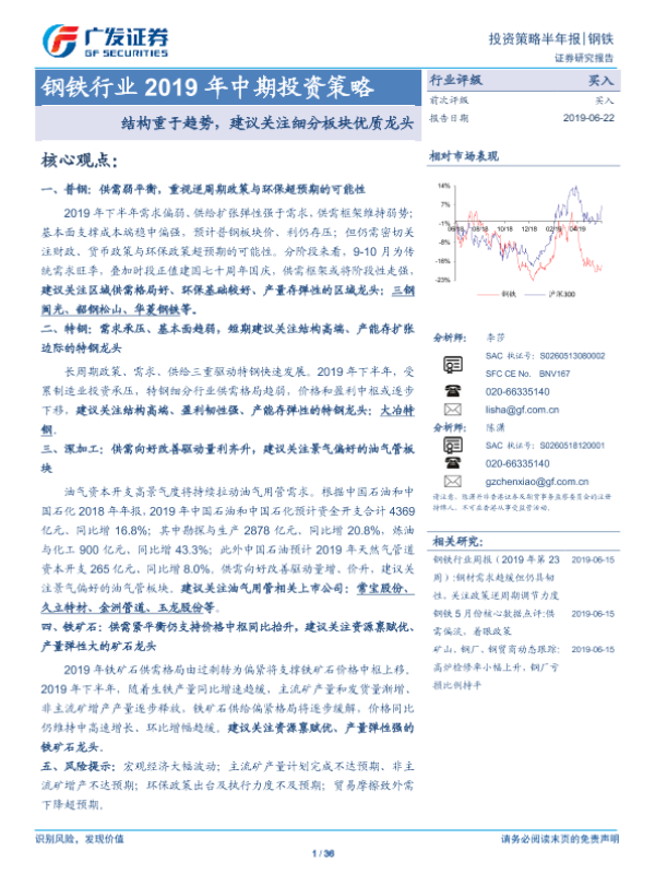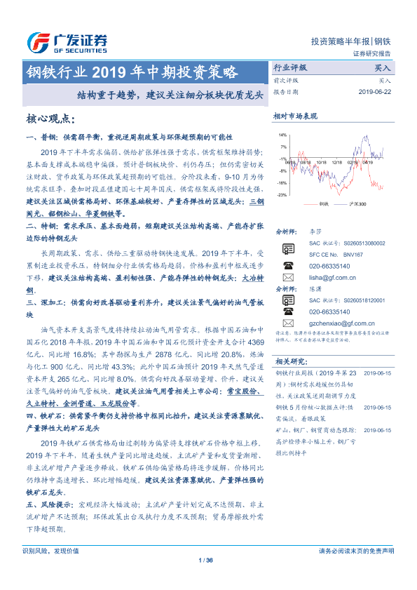 【广发证券】【20190622】钢铁行业2019年中期投资策略:结构重于趋势,建议关注细分板块优质龙头-36页