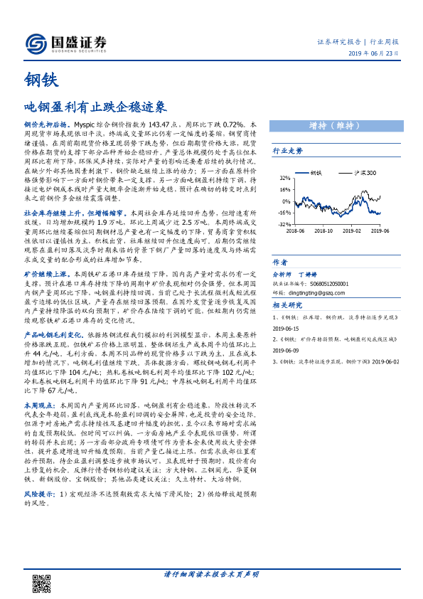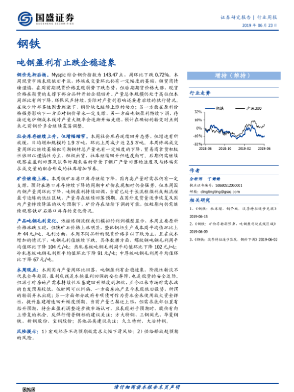 【国盛证券】【20190623】20190623-国盛证券-钢铁行业周报:吨钢盈利有止跌企稳迹象-10页
