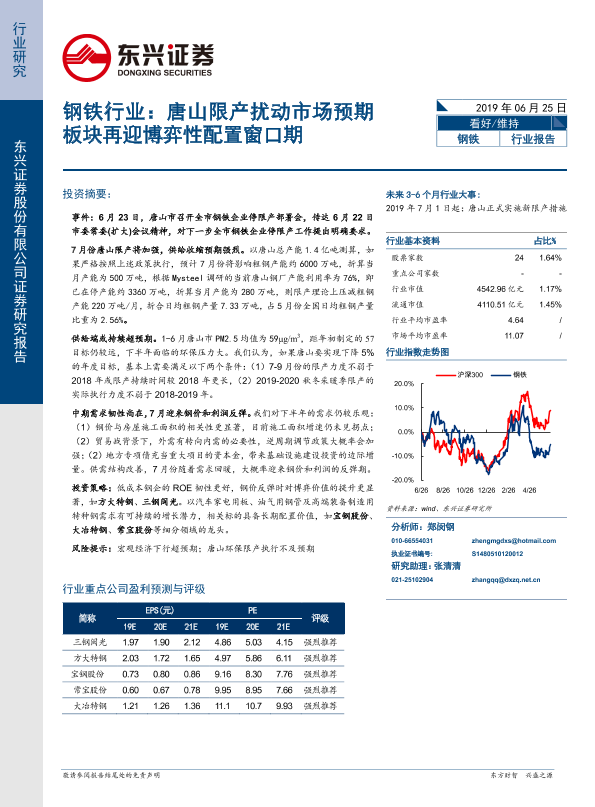 【东兴证券】【20190625】钢铁行业:唐山限产扰动市场预期板块再迎博弈性配置窗口期-7页