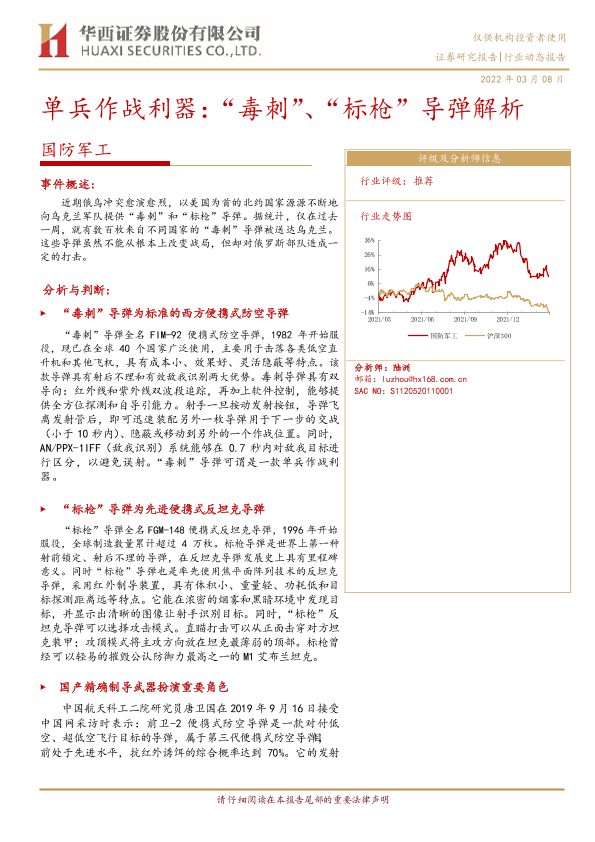 【华西证券】【20220308】国防军工行业:单兵作战利器,“毒刺”、“标枪”导弹解析-15页