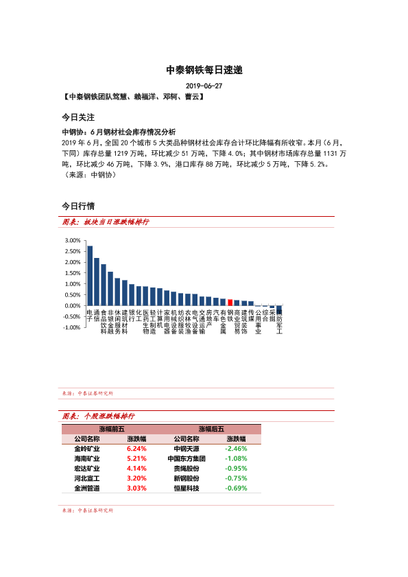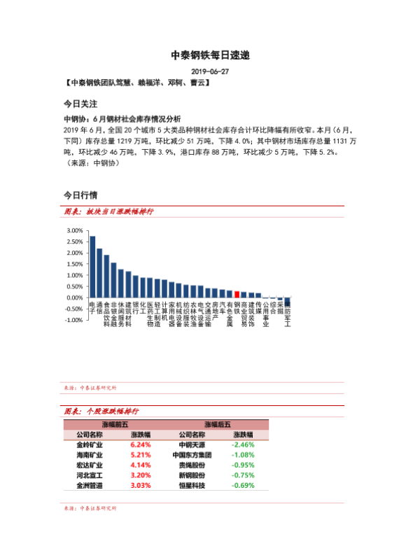 【中泰证券】【20190627】中泰钢铁每日速递-6页