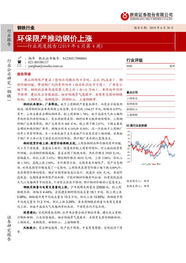 【浙商证券】【20190630】20190630-浙商证券-钢铁行业周度报告:环保限产推动钢价上涨-18页
